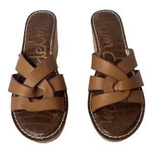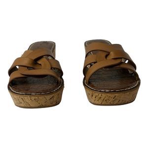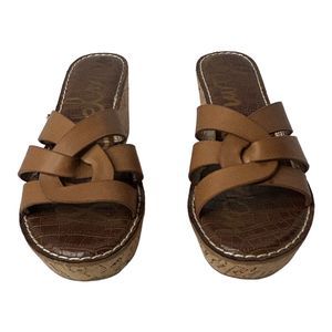 Sam Edelman Raynere Cork Heel Wedge Leather Slides Tan Women Size 9.5