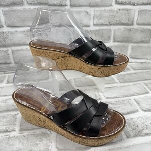 Sam Edelman Raynere Womens Size 7.5 Black Leather Platform Cork Wedge Sandal