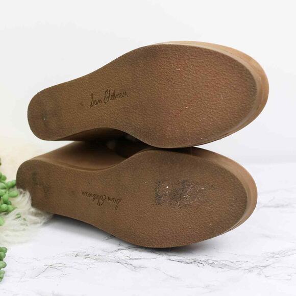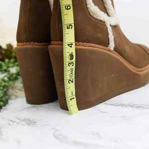 Sam Edelman Reagan Tan Suede Leather Faux Shearling Wedge Platform Boot 10 Women
