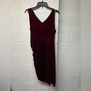 This stunning red sheath dress by Sam Edelman is perfect for a cocktail or night out. Featuring a chic cowl neck and elegant ruching, it offers a flattering silhouette. The sleeveless design and backless detail add a touch of allure to this sophisticated piece.