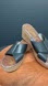 Elegant black straps with a comfortable tan wedge. Perfect for casual outings. The inside strap has some cracking, the outside is perfect. GUC