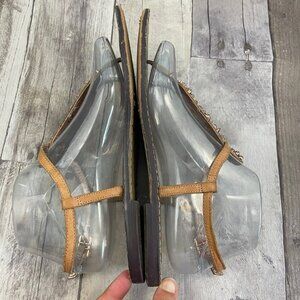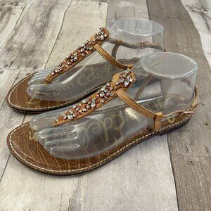 Sam Edelman Rhinestone Studded Gwyneth T Strap Thong Sandal Tan Flats Sz 8.5