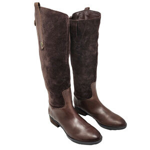 Sam Edelman Riding Boots Women 6M Pembrooke Brown Leather & Suede Full Zip