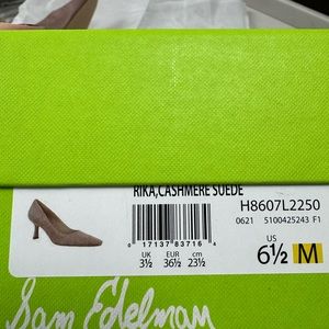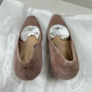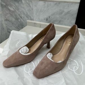 Soft pink “cashmere” color, suede, square toe. Kitten heel. Never worn. Size 6.5 medium.