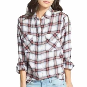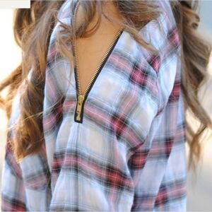 Plaid flannel lightweight blouse