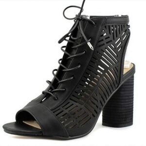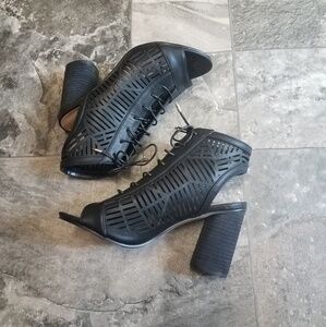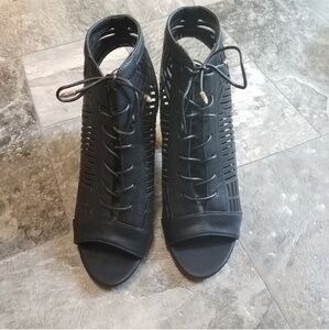 Sam Edelman Rocco Black Leather Laser Cut Block Heel Lace Up Sandals 8.5