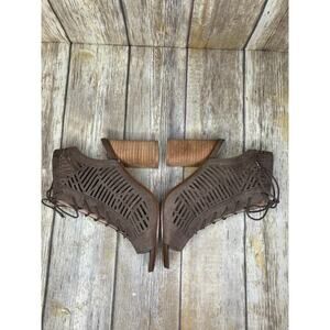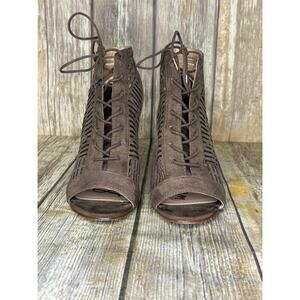 Sam Edelman Rocco Boho Hippie Vegan Leather Lace Up Block Heels Womens Sz 6.5