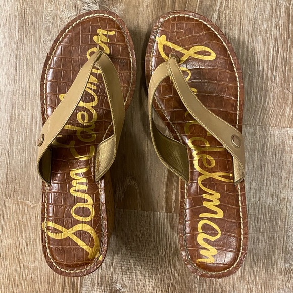 Sam Edelman Romy Sandal in 8.5! Gently worn, minimal to no visible wear on the top of the shoe. Gently worn. I wear an 8.5, and these are a true 8.5!