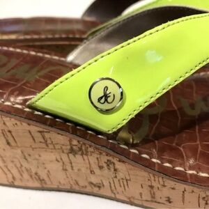 Sam Edelman Romy Y2K Cork Wedge Platform Sandals neon green Disco Size 8M womens
