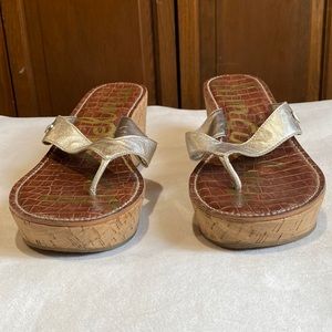 Cute Cork wedged thong sandals by Sam Edelman in a Pewter color. Thee are in excellent used condition. All offers welcomed.