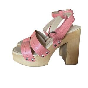 Sam Edelman Rosalind Ankle Strap Leather Wood Platform Stud Heel Sandals size 8