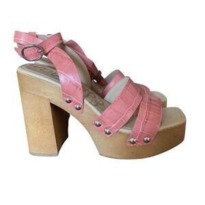 Sam Edelman Rosalind Ankle Strap Leather Wood Platform Stud Heel Sandals size 8