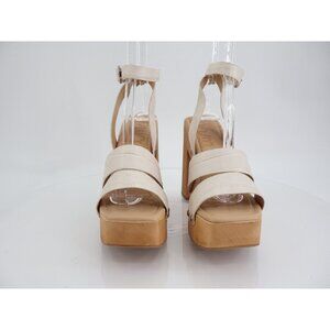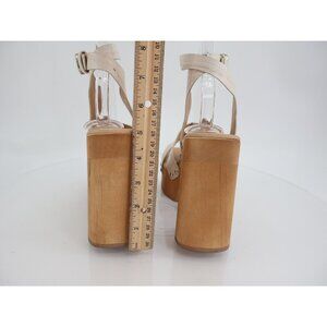 -Sam Edelman Rosalind Womens Sandals Platform Wood Heel Beige Suede Strappy 8.5