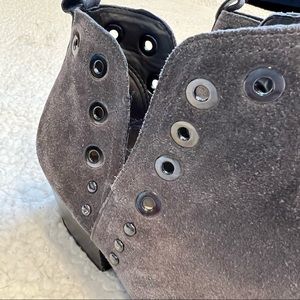 Sam Edelman Rubin Bootie Ankle Boot Grey Suede Silver Grommets