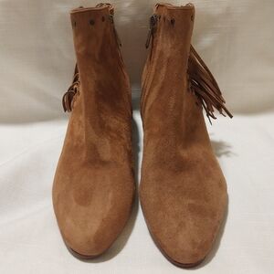 Sam Edelman Rudie Tan Suede Fringed Studded Side Zip Western Ankle Bootie