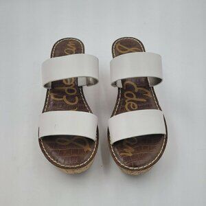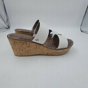 Sam Edelman Rydell Cork-Wedge Leather Open Toe Sandals in White Size 10.5M NEW
