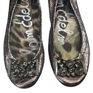 Sam Edelman S-Caper Jewel Embellished Flats Size 8.5 m silver snake skin texture