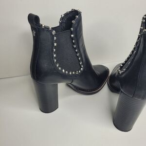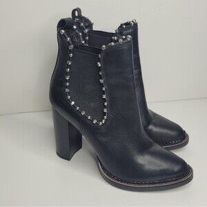 Sam Edelman Salma Heeled Ankle Studded Chelsea Boot Black Leather Size 7
