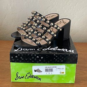 Sam Edelman Sandals 6 Suri Black Leather Stud Strappy Block Heels with Box