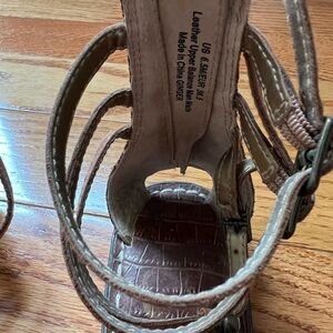 These are fun sandals that are a discontinued design. Brown with tarnish gold beaded detail.