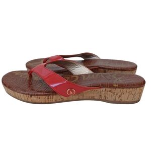 Sam Edelman Sandals Tanya Red Patent Leather Cork Wedge Womens 7.5 M