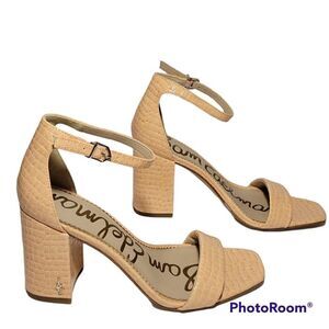 Sam Edelman Sandals Womens Sz 6 Daniella Open Toe Ankle Strap Heel Peach Croco