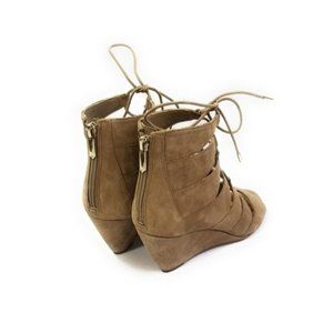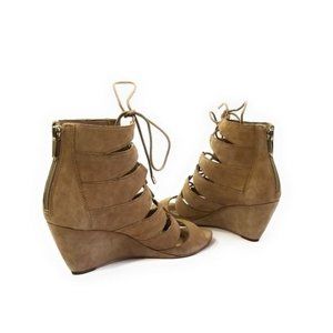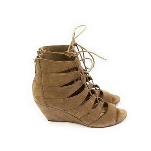Sam Edelman Santina Open Toe Suede Nubuck Lace Up Wedge Sandals Size 7