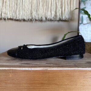 Sam Edelman Sara Black Leather Cap Toe Shimmer Boucle Tweed Ballet Flat Size 8.5