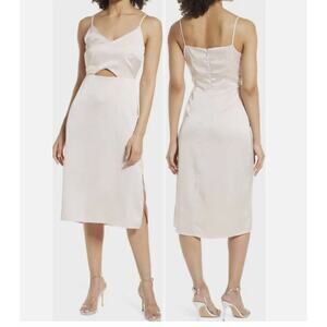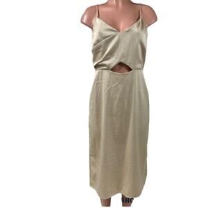Sam Edelman Satin Champagne Dress Size 10 Cut-Out Midi Slip Style