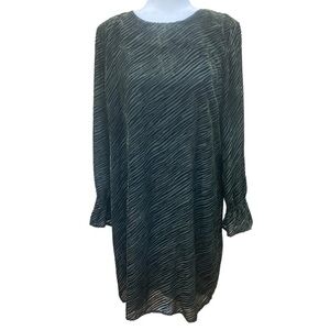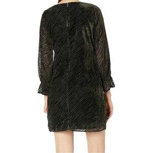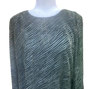 Sam Edelman Shift Dress Large Burnout Velvet Zebra Green Long Sheer Sleeves