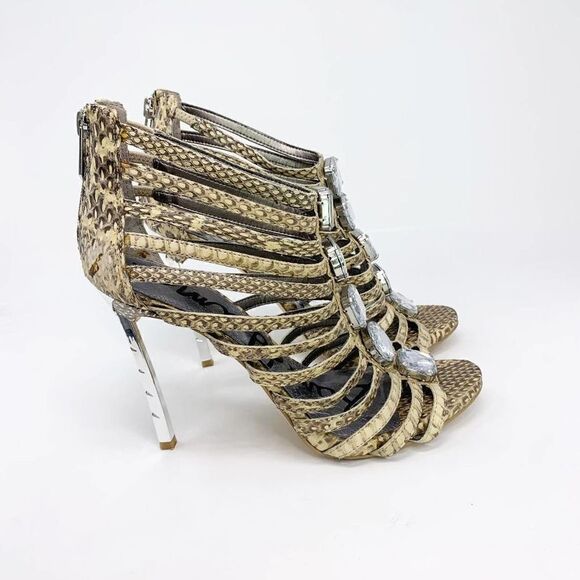 Sam Edelman Shoes Heels Womens 8 Tan Leather Stilleto Zipper Gladiator Sandals