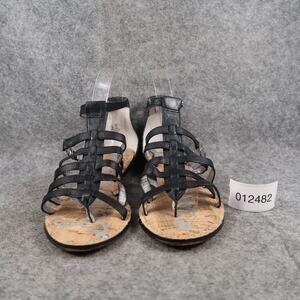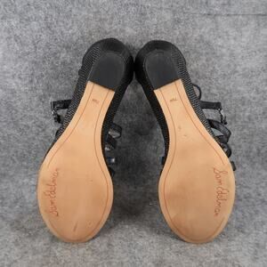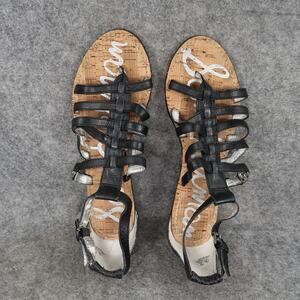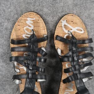 Used Sam Edelman Shoes Womens 7.5 Sandal Leather Caged Buckle Strappy Low Wedge Donna
