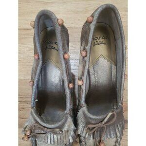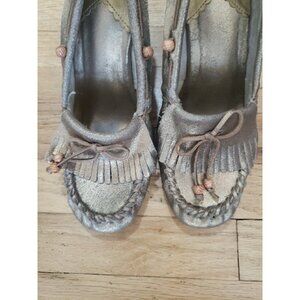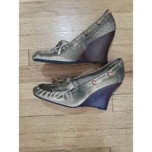 Sam Edelman Shoes Womens Leather Mocs Wedge Kiltie Beaded Gold Metallic 8.5