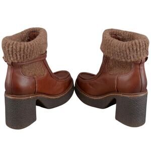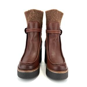 Sam Edelman Sidney Chunky Platform Bootie Size 10M Brown Leather Australian Wool