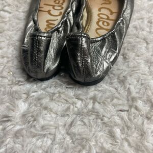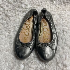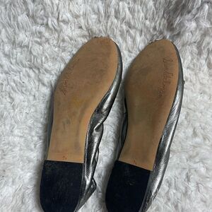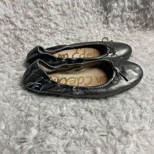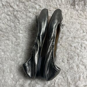 Elegant silver flats with bow detail. Comfortable and stylish.