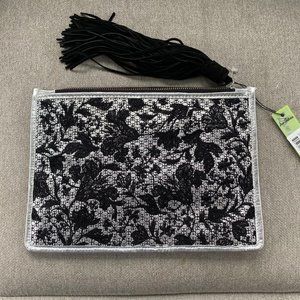 Sam Edelman Silver Floral Patchwork Wristlet Clutch