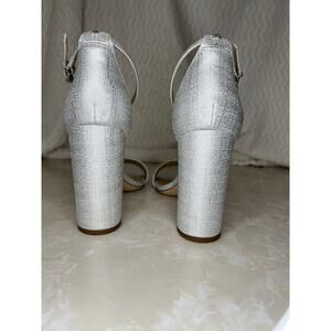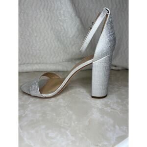 Sam Edelman Silver Metallic Yaro Ankle Strap Block Heeled Sandal Womens