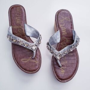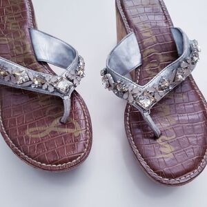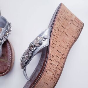 Sam Edelman Silver Rhinestone Cork Wedge Sandal
