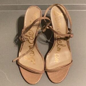 Sam Edelman Size 11M Dara Croc-Embossed Sandals in Maple Sugar