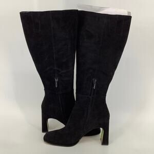 Sam Edelman Size 8.5 Black Suede Issabel Heeled Knee High Boots Square Toe P28-1
