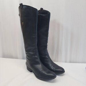 Sam Edelman Size 8.5 Penny Riding Boots Black Leather Knee High Zip Snap Block H