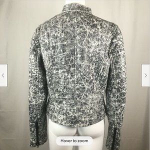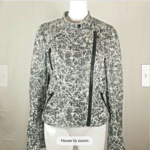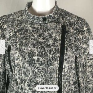 Sam Edelman Size Small Crackle Moto Jacket Cropped Black White unique Asymmetrical Jacket. Zipper detail on sleeves