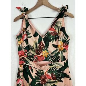 Sam Edelman Sleeveless Flamingo Print Midi Dress Tropical Vacation Size 8