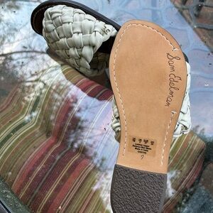A glamorous twist on a classic slide on sandal. Griffin's woven padded strap brings a nice mix of simple, and luxe.