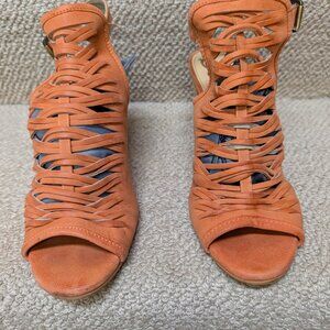 Burnt orange sling backs worn maybe two times total. Gray bags have been added to the shoes to show front of shoe better. These will not be included in the sale