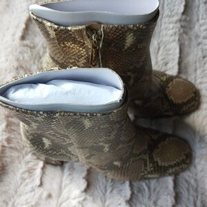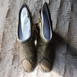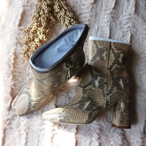 Sam Edelman Snake Print Ankle Boots Size 5 Square Toe Block Heel Chic Fall