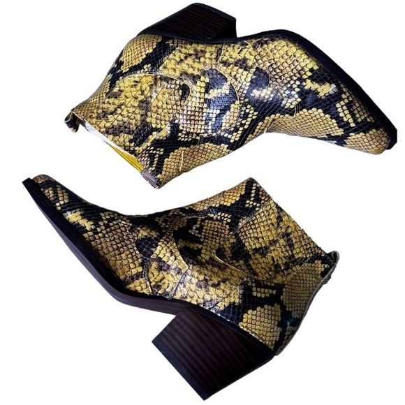 Sam Edelman Snake Print Yellow and Black Leather Booties