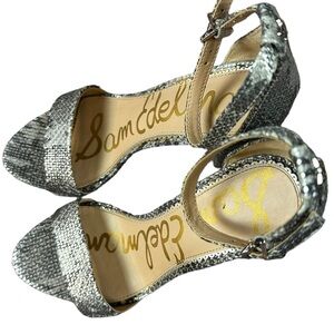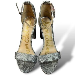 Sam Edelman Snakeskin Yaro Block Heeled Ankle Strap Sandals Silver Pumps 7