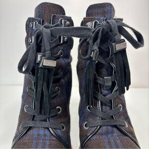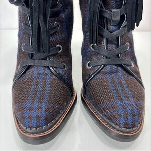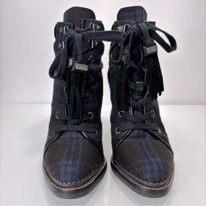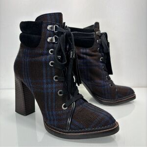 Sam Edelman Sondra Navy Brown Plaid Tassel Lace Up Ankle Boots Size 7.5