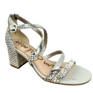 Sam Edelman Stacie Strappy Heeled Sandals White Snake Print sz 5 Wedding Party